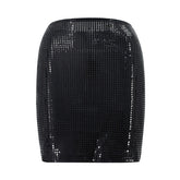 Shiny Sequins Chic Bodycon Solid Color Mini Skirt - Black